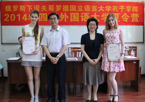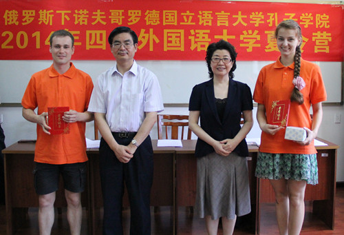 7月21日,俄罗斯下诺夫哥罗德语言大学孔子学院2014年夏令营在我校正式闭营。太阳集团tyc122cc李克勇校长、李建平副校长、俄罗斯下诺夫哥罗德语言大学孔子学院师生、留学生部教师、中文系和俄语系志愿者参加了闭营仪式。