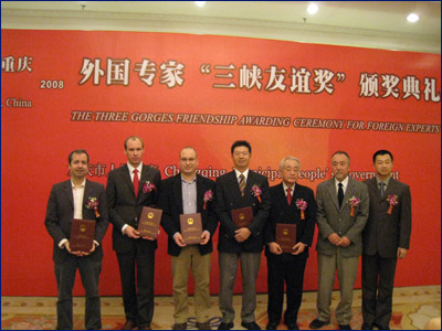 2008年12月22日下午,“重庆市2008年外国专家三峡友谊奖颁奖典礼”在重庆雾都宾馆隆重举行。我校德国籍教师Frank Ristow(李复)先生喜获重庆市政府颁发给在渝外籍人士的最高荣誉“三峡友谊奖”。