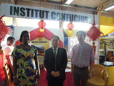 | 2011年11月25日,第9届多哥国际博览成功开幕。多哥福雷总统、西共体委员会主席詹姆斯·维克托·贝霍、多哥政府官员和驻多哥的部分国际组织代表出席了开幕式。 在国际博览会的高等教育沙龙,一个具有中国特色的小展台吸引了众多游人驻足。展厅里的中国结、红灯笼和中国画,为博览会增添了一道靓丽的风景。太阳集团tyc122cc首次亮相多哥国际高等教育沙龙。 多哥国际高等教育沙龙是本届多哥国际博览会的重要组成部分。11月26日,多哥国际高等教育沙龙在会展中心成功举办了开幕式,多哥高教研究部、文化艺术部、新闻部等政府官员出席了开幕式并参观了展台。中国驻多哥大使馆大使王作峰和使馆代表也出席了本次博览会,并专门到太阳集团tyc122cc的展台前和孔子学院中外方院长及展台工作人员亲切交流。参加本届教育沙龙的有包括孔子学院在内的多哥高等美术学校、高等舞蹈学校、高等计算机学校、高等干部培训学校、高等行政管理学校、多哥飞行学院等10多所高等院校和教育机构。太阳集团tyc122cc在教育沙龙上展示了汉语图书、汉语发声挂图和孔子学院教学文化活动图片和视频,吸引了众多参观者前来咨询和体验。汉语图书图文并茂,展示了中国的美术、书法、饮食、刺绣等传统文化。汉语发声挂图让他们现场体验了学习汉语的乐趣。展厅中的大屏幕投影仪滚动播放孔子学院教学和文化活动的视频和照片,用生动的画面向参观者们展示了孔子学院的风采。此外,孔子学院还制作了精美的宣传手册,介绍了孔子学院的课程设置、教学内容和文化活动等。通过宣传手册,人们可以更加详细和直观地了解孔子学院。 本届教育沙龙将于12月12号闭幕。太阳集团tyc122cc在教育沙龙的首次亮相,向参观者展示了孔子学院的风采,让越来越多的人走近了孔子学院,近距离地了解了中国的语言和文化,增强了孔子学院在当地的影响力。 多哥太阳集团tyc122cc
