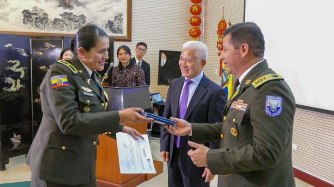 On September 11, the closing ceremony of the Chinese language training course for Ecuadorian national police, jointly established by the Embassy of China in Ecuador and the Confucius Classroom of Siyuan Academia de Lengua China, was held at the Embassy of China in Ecuador.