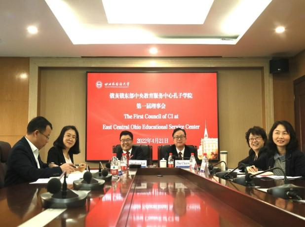On the morning of April 21, the Confucius Institute at East Central Ohio Educational Service Center held the 1st council video meeting with participants including Holly Branch, the principle of East Central Ohio Educational Service Center, Michele Carlisle, the director of the Confucius Institute, and other heads of its departments such as , Matt Kingand Nic Brown. President Dong Hongchuan and vice president Zhu Chaowei of SISU, Zhang Youbin,the director of office of International Cooperation and Exchange and Yu Quanhui, the director of Office of Finance attended the meeting.