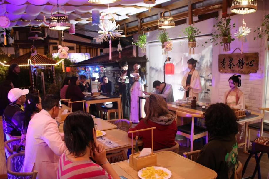 The activity included five segments: a Mid-Autumn cultural lecture, tea art demonstration, guzheng performance, calligraphy art experience, and mooncake taste.