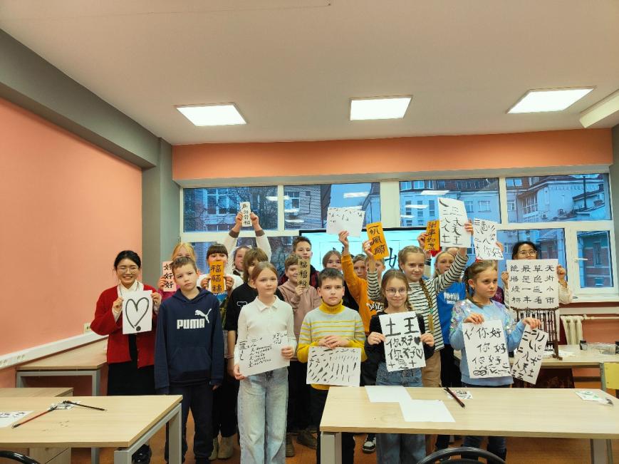 Fifth-grade students from Bolshoye in Nizhny Novgorod Oblast experienced calligraphy, paper-cutting, and traditional Chinese tea art.