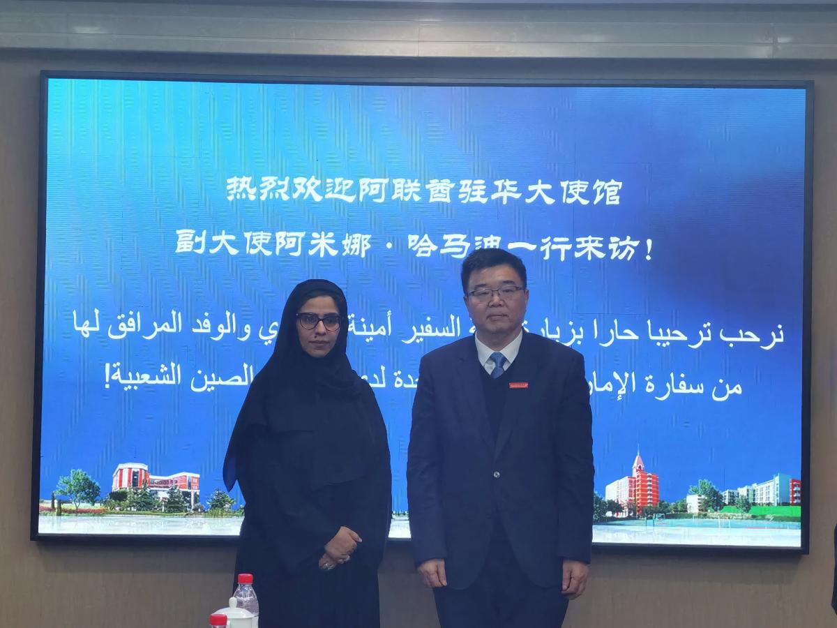 On January 17, 2025, the delegation led by Amina Al Hamadi, Deputy Ambassador of the United Arab Emirates (UAE) to China visited SISU. President Dong Hongchuan met with the guests.